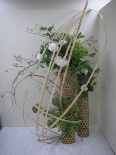 左: グロリオサ、きいちご、利休草、割竹、晒したもの